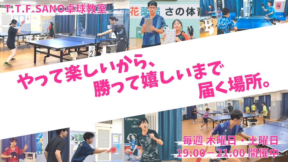 | 支払い方法 | 現金対応▶ ・個人レッスン ・練習パートナー ・各種教室 ・台貸し ・各種大会 PayPay対応▶ ・台貸し ・T.T.F.SANO卓球教室 ・ビギナー教室 |